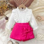Compleu Fetite Camasa Alba si Fusta Pantaloni Roz Denisa – 2-3 ani